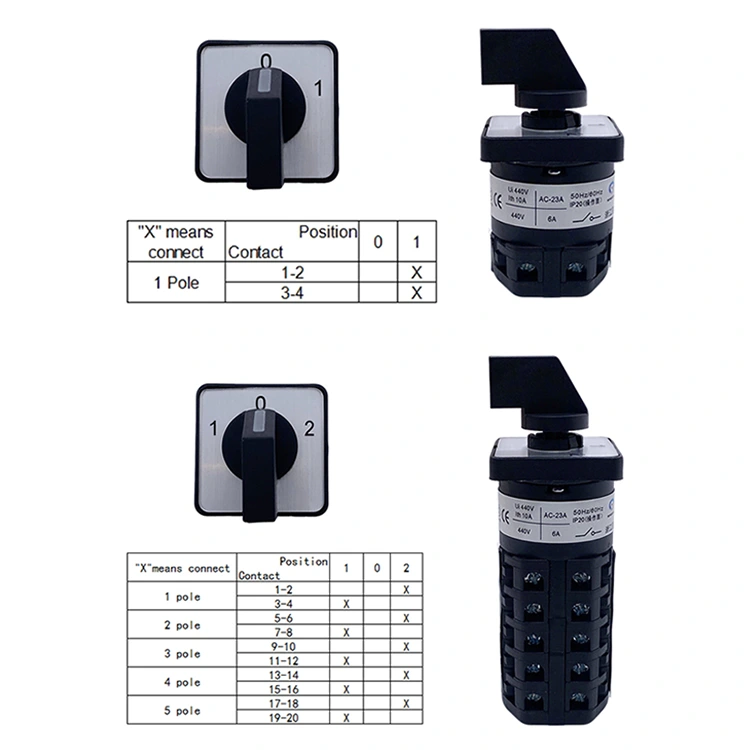 De 10A Cam Switch met drie standen is compact van formaat en kan flexibel worden opgesteld in een beperkte installatieruimte; het heeft rijke functies om aan verschillende controlevereisten te voldoen; compact van structuur en rigoureus in materiaalkeuze om goede isolatieprestaties te garanderen en stroomveiligheid te garanderen. Tegelijkertijd is de schakelaarconversie flexibel en soepel, zijn de veiligheid en betrouwbaarheid hoog, is het uiterlijk nieuw en is het gebruiksmodel zowel praktisch als mooi, en is het uiterlijkontwerp van verschillende apparatuur aangepast.