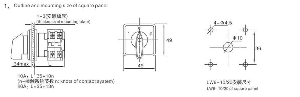 - Uitstekende veiligheidsprestaties: 10A roterende nokkenschakelaar met drie standen, waarbij streng geselecteerde materialen van hoge kwaliteit en een algehele compacte structuur zijn gebruikt, het heeft uitstekende isolatieprestaties, waardoor de elektrische veiligheid vanaf de bron wordt gegarandeerd; de schakelbediening verloopt soepel en flexibel, met hoge veiligheid en betrouwbaarheid.