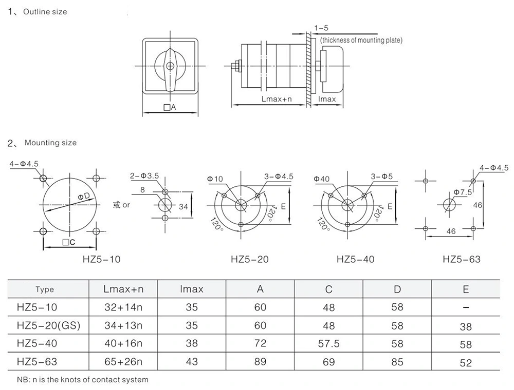 Deze 20A combinatie roterende nokkenschakelaar 4kW met shell is geschikt voor 50Hz AC-circuitsystemen. Behorend tot de HZ5-serie, kan de nominale bedrijfsspanning oplopen tot 380V AC en 240V DC, en de nominale stroom kan oplopen tot 63A. Het specifieke model is 20A 4kW met een beschermende behuizing.