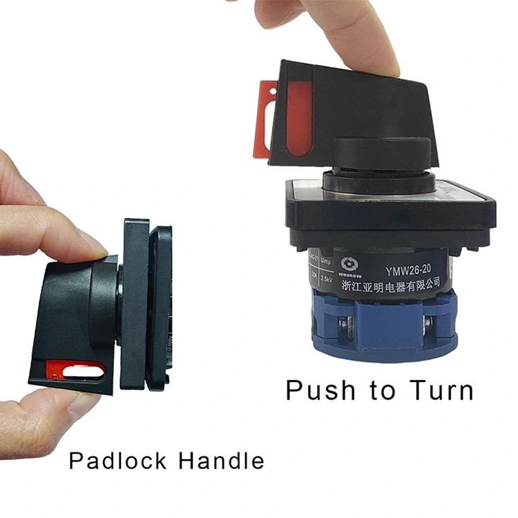 YAMING houdt zich aan een klantgericht concept en biedt op maat gemaakte systeemoplossingen voor de 20A hangslot-duwschakelaar met roterende nokkenschakelaar om aan diverse marktbehoeften te voldoen. Het product heeft meerdere toepassingsscenario's, waaronder conversie van het hoofdcircuit, motorbesturing, hoofdbesturing en meting. Het ondersteunt verschillende flexibele bedrijfsmodi, zoals positionering, zelfreset en positionering-zelfreset.