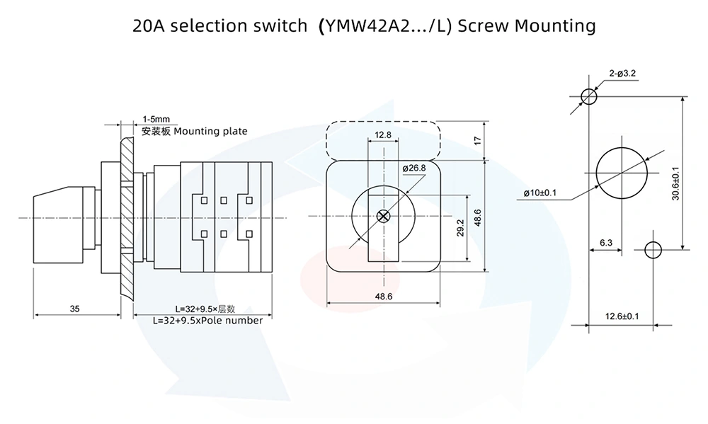 De LW42-serie 20A drie-positie Dual Power Control Cam Switch is een krachtige elektrische besturingscomponent die onafhankelijk is ontwikkeld en geproduceerd door YAMING. Het is speciaal ontworpen voor elektrische besturingssystemen van CNC-bewerkingsmachines en andere elektrische apparatuur, geschikt voor AC 50Hz-voedingsomgeving met een spanning tot 690V. Het product wordt voornamelijk gebruikt in elektrische besturingscircuits voor besturing, lichtbeveiliging, signaal- en programmaselectie, evenals selectie van spannings- en stroommetingen.