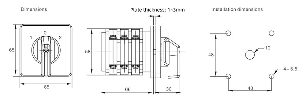 De 32A omschakelaar met dubbele vermogensregeling met drie standen dient ook als circuitbedieningsschakelaar, testapparatuurschakelaar, motorbedieningsschakelaar, hoofdbedieningsschakelaar en lasmachineschakelaar, die meerdere gebruiksscenario's dekt om aan de uiteenlopende behoeften van de klant te voldoen.