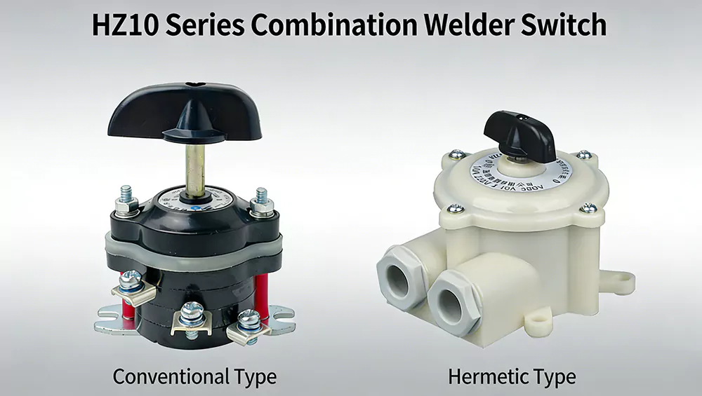 De HZ10-10/3 combinatie nokkenschakelaar 10A is geschikt voor gebruik in lasmachines om stromen onder 100A te regelen, en voor de hoofdcircuits van elektrische apparatuur en de omzetting van elektrische hulpapparaten bij AC 50Hz (of 60Hz) met een nominale spanning van 380V en lager.