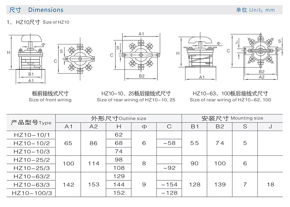 De HZ10-6E91 installatie achter het bord 10A combinatieschakelaar past de lasstroom nauwkeurig aan onder de 100A. Ze zijn ideaal voor de controle van het hoofdcircuit en de conversie van hulpcircuits van elektrische apparatuur. Ze passen op AC 50/60 Hz-systemen met een spanning tot 380 V.